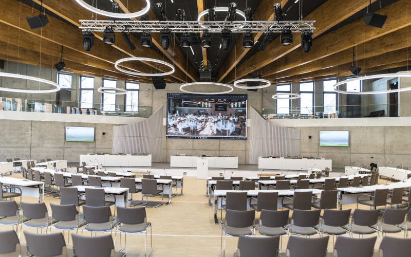 Erneuerung der medientechnischen Einrichtung im Matthias-Erzberger-Saal und Eurosaal sowie ein Wegeleitsystem.