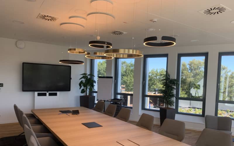 Wir beraten Sie zu modern ausgestatteten Konferenzräumen für zeitgemäße Meetings unter Einsatz wegweisender audiovisueller Medientechnik. Ob Online, in Präsenz oder Hybrid – wir haben die passende Lösung für Sie.
